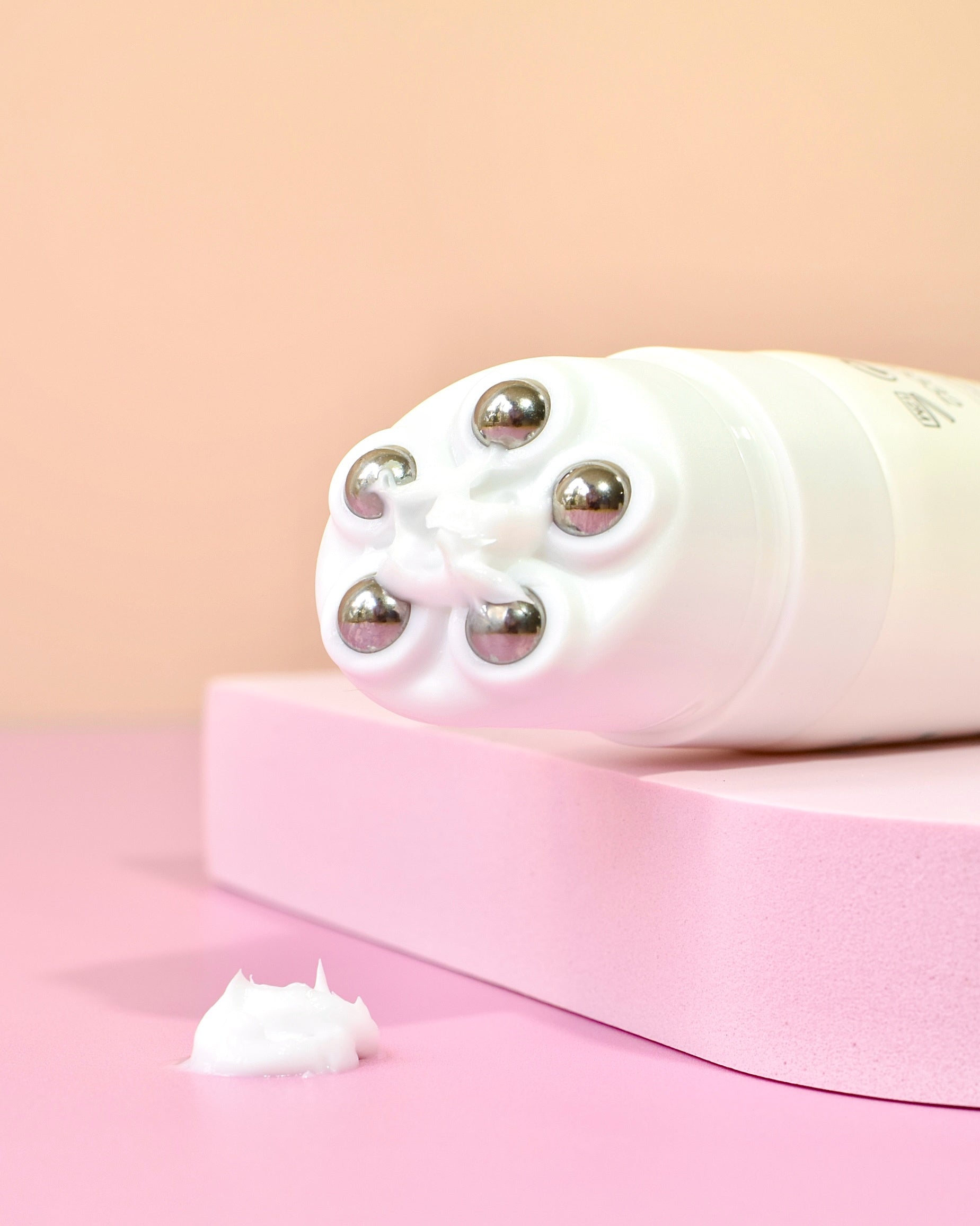 - Aplicador roller de 5 esferas metálicas: masajea, estimula la microcirculación y refresca.